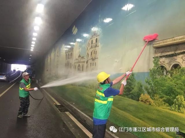 2018年5月,我站借著鞏固創(chuàng)文成果和全面提升城市品質(zhì)的契機,用軟質(zhì)清潔工具和噴灑清洗裝置對迎賓路—建設(shè)路下沉式立交隧道兩側(cè)壁畫進行了一次全面的清洗,并配合區(qū)城管局拆除下沉立交內(nèi)殘舊、損壞的隧道燈,新安裝了156套LED燈。