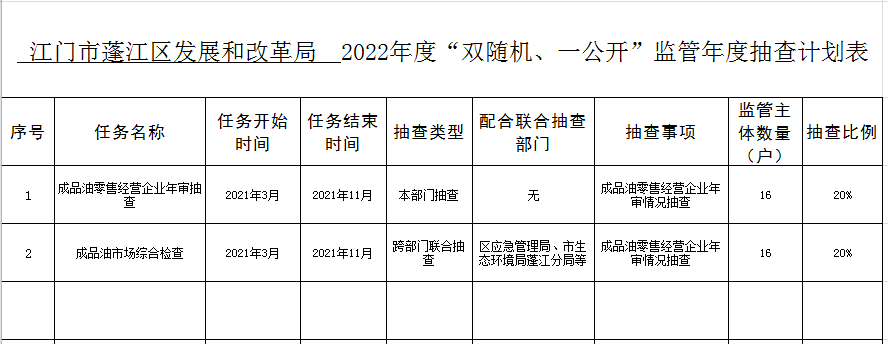 2022年“雙隨機(jī)、一公開”年度抽查計(jì)劃表和抽查事項(xiàng)清單
