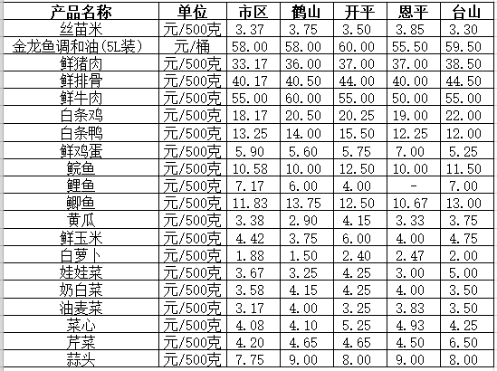 江門市菜籃子報(bào)價(jià)(4月27日)