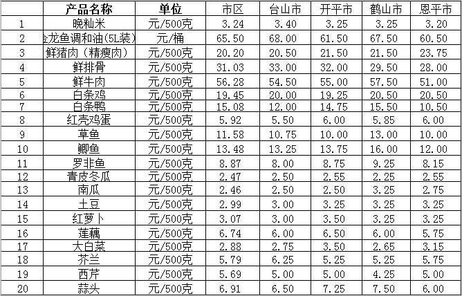 江門市菜籃子報價(2月17日)