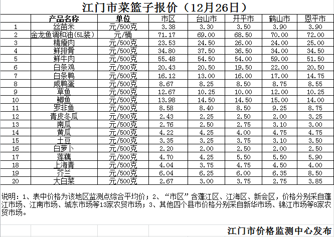 江門市一周“菜籃子”價格動態(tài)(第47期)