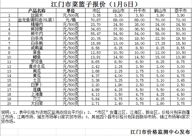 江門市價格監(jiān)測情況表(2023年1月5日)