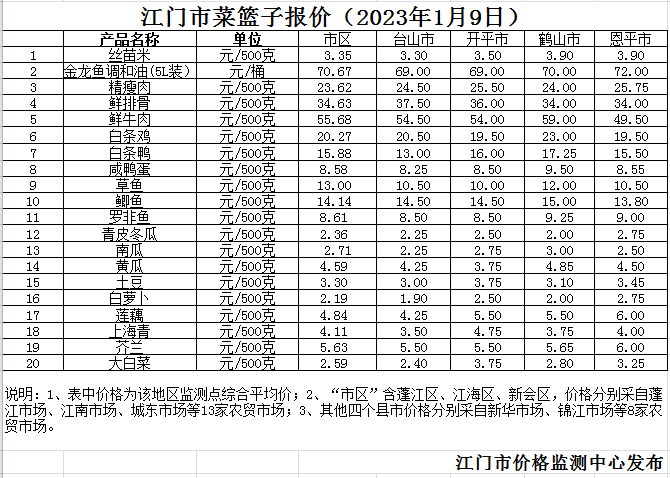 江門市一周“菜籃子”價格動態(tài)(2023年第1期)