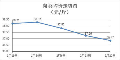 肉類商品價格略有下降。本周所監(jiān)測的8種肉類商品價格波動情況為2漲6跌,綜合零售均價為36.87元/斤,環(huán)比下降1.04%。其中:排骨、精瘦肉、有皮上肉、牛肉零售均價分別為每斤32.39元、21.81元、17.93元、54.73元,環(huán)比分別下降1.96%、下降3.54%、下降3.08%、上漲0.04%。