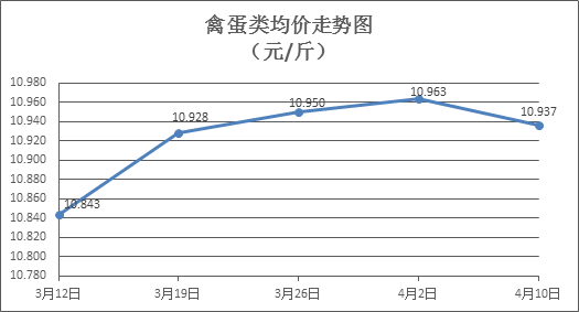 禽蛋類商品價(jià)格窄幅盤整。本周所監(jiān)測(cè)的6種禽蛋類商品價(jià)格波動(dòng)情況為2漲3跌1平,綜合零售均價(jià)為10.937元/斤,環(huán)比下降0.24%。其中:白條雞、白條鴨零售均價(jià)分別為每斤19.88元、15.21元,環(huán)比分別上漲0.56%、下降1.11%;白殼雞蛋、鴨蛋零售均價(jià)分別為每斤6.94元、7.82元,環(huán)比分別下降0.72%、持平。