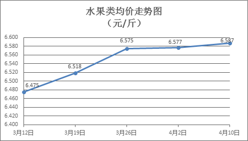 水果類商品價(jià)格小幅盤升。本周所監(jiān)測(cè)的6種水果商品價(jià)格波動(dòng)情況為4漲2跌,綜合零售均價(jià)為6.587元/斤,環(huán)比上漲0.15%。其中蘋果、香蕉、葡萄零售均價(jià)分別為每斤7.16元、3.24元、13.04元,環(huán)比分別上漲0.28%、上漲1.89%、下降0.15%。