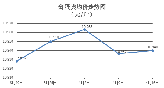 家禽類商品價(jià)格略有小漲。本周所監(jiān)測的6種禽蛋類商品價(jià)格波動情況為3漲2跌1平,綜合零售均價(jià)為10.940元/斤,環(huán)比上漲0.03%。其中:白條雞、白條鴨零售均價(jià)分別為每斤20.00元、15.32元,環(huán)比分別上漲0.60%、上漲0.72%;白殼雞蛋、鴨蛋零售均價(jià)分別為每斤6.90元、7.82元,環(huán)比分別下降0.58%、持平。