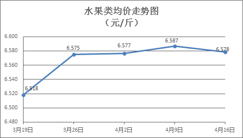 水果類商品價(jià)格升降互現(xiàn)。本周所監(jiān)測的6種水果商品價(jià)格波動情況為3漲2跌1平,綜合零售均價(jià)為6.578元/斤,環(huán)比下降0.13%。其中蘋果、香蕉、葡萄零售均價(jià)分別為每斤7.22元、3.24元、13.00元,環(huán)比分別上漲0.84%、持平、下降0.31%。