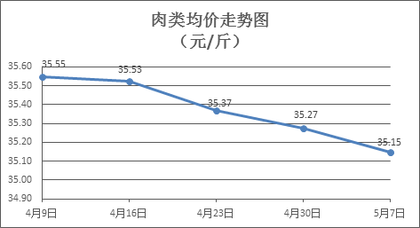 肉類商品價(jià)格小幅下調(diào)。本周所監(jiān)測(cè)的8種肉類商品價(jià)格波動(dòng)情況為1漲6跌1平,綜合零售均價(jià)為35.15元/斤,環(huán)比下降0.35%。其中:排骨、精瘦肉、有皮上肉、牛肉、帶骨羊肉零售均價(jià)分別為每斤29.21元、19.18元、14.49元、54.62元、46.33元,環(huán)比分別下降1.42%、下降1.44%、下降0.55%、下降0.05%、下降0.19%。