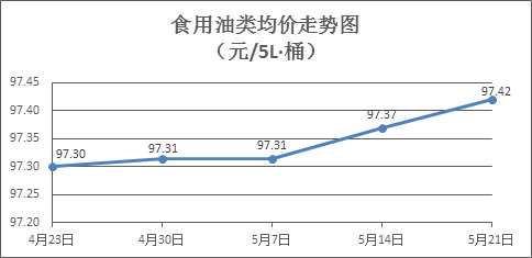 食用油類商品價格微幅盤升。上周所監(jiān)測的9種食用油(5L裝)商品價格波動情況為4漲3跌2平,綜合零售均價為97.42元/桶,環(huán)比上漲0.05%。其中:魯花花生油、金龍魚調(diào)和油零售均價分別為每桶157.44元、71.54元,環(huán)比分別上漲0.02%、下降0.03%。