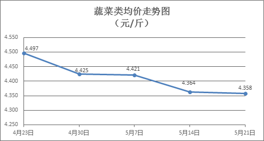 據(jù)本市21家農(nóng)貿(mào)市場監(jiān)測數(shù)據(jù)顯示,上周(5月15日至5月21日,下同)市場上各類“菜籃子”商品供應充足,所監(jiān)測的7大類“菜籃子”商品價格5漲2跌。其中:糧油類商品價格穩(wěn)中微升,肉菜類商品價格總體略降,禽蛋類、水果類、水產(chǎn)類商品價格窄幅盤升。隨著氣溫升高及供求關系變化,預計近期肉類、蔬菜類商品價格總體有所下調(diào),其他商品價格則以小幅波動為主。