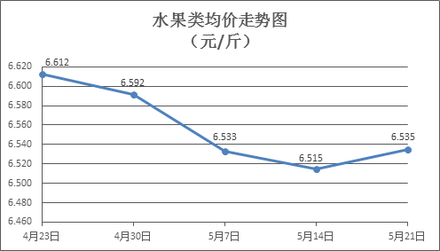 水果類商品價格略有回升。上周所監(jiān)測的6種水果商品價格波動情況為4漲2跌,綜合零售均價為6.535元/斤,環(huán)比上漲0.31%。其中蘋果、香蕉、葡萄零售均價分別為每斤7.28元、3.23元、13.28元,環(huán)比分別下降0.14%、上漲0.62%、上漲0.91%。