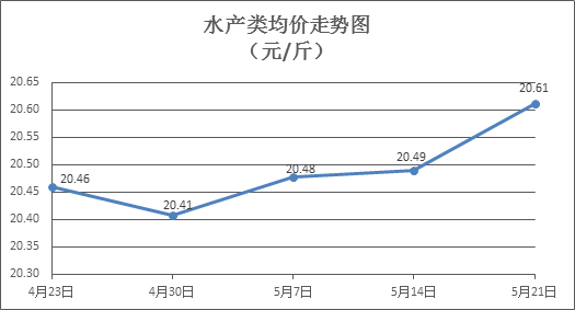 水產(chǎn)類商品價格總體略漲。上周所監(jiān)測的10種水產(chǎn)商品價格波動情況為6漲3跌1平,綜合均價為20.61元/斤,環(huán)比上漲0. 60%。其中:草魚、鯽魚、鳙魚、羅非魚、海蝦零售均價分別為每斤11.06元、13.65元、10.01元、8.37元、50.93元,環(huán)比分別上漲0.91%、下降0.29%、下降0.10%、上漲0.12%、上漲0.51%。