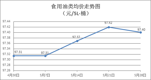 食用油類商品價格微幅波動。上周所監(jiān)測的9種食用油(5L裝)商品價格波動情況為2漲4跌3平,綜合零售均價為97.40元/桶,環(huán)比下降0.02%。其中:魯花花生油、金龍魚調(diào)和油零售均價分別為每桶157.34元、71.54元,環(huán)比分別下降0.06%、持平。