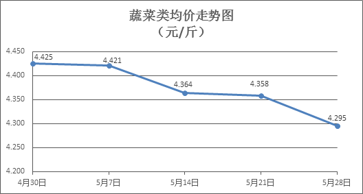 蔬菜類商品價格以降為主。上周所監(jiān)測的32 種蔬菜商品價格波動情況為8漲23跌1平,綜合零售均價為4.295元/斤,環(huán)比下降1.43%。其中:漲幅居前的品種包括菠菜、絲瓜、生姜,零售均價分別為每斤5.20元、4.54元、6.81元,環(huán)比分別上漲3.38%、2.71%、1.49%;跌幅居前的品種包括白莧菜、本地菜心、苦瓜,零售均價分別為每斤4.00元、4.64元、4.59元,環(huán)比分別下降7.41%、5.50%、4.97%。