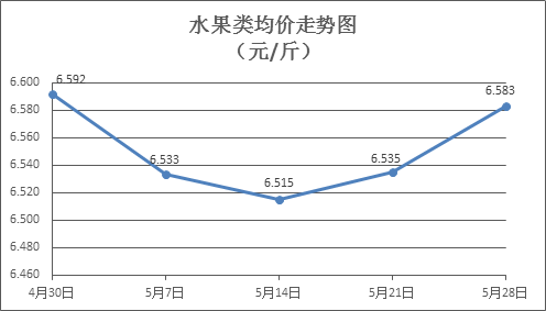 水果類商品價格微幅上漲。上周所監(jiān)測的6種水果商品價格波動情況為4漲1跌1平,綜合零售均價為6.583元/斤,環(huán)比上漲0.74%。其中蘋果、香蕉、葡萄零售均價分別為每斤7.36元、3.23元、13.36元,環(huán)比分別上漲1.10%、持平、上漲0.60%。