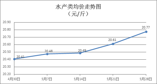 水產(chǎn)類商品價格略有上漲。上周所監(jiān)測的10種水產(chǎn)商品價格波動情況為8漲1跌1平,綜合均價為20.77元/斤,環(huán)比上漲0. 78%。其中:草魚、鯽魚、鳙魚、羅非魚、海蝦零售均價分別為每斤11.07元、13.75元、9.98元、8.47元、52.00元,環(huán)比分別上漲0.09%、上漲0.73%、下降0.30%、上漲1.19%、上漲2.10%。