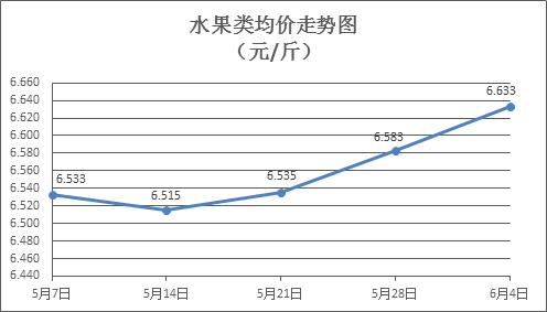 水果類(lèi)商品價(jià)格總體略漲。上周所監(jiān)測(cè)的6種水果商品價(jià)格波動(dòng)情況為4漲2跌,綜合零售均價(jià)為6.633元/斤,環(huán)比上漲0.76%。其中蘋(píng)果、香蕉、葡萄零售均價(jià)分別為每斤7.42元、3.21元、13.43元,環(huán)比分別上漲0.82%、下降0.62%、上漲0.52%。