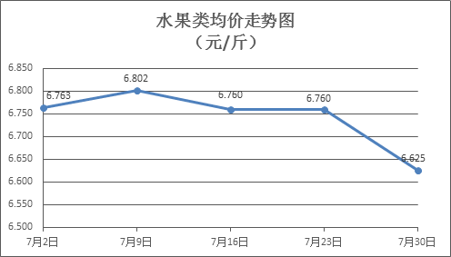 水果類商品價(jià)格小幅波動(dòng)。上周所監(jiān)測(cè)的6種水果商品價(jià)格波動(dòng)情況為3漲2跌1平,綜合零售均價(jià)為6.625元/斤,下降2.00%。其中蘋(píng)果、葡萄、梨零售均價(jià)分別為每斤7.44元、13.40元、6.67元,環(huán)比分別上漲0.68%、下降6.03%、上漲0.45%。