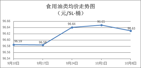 食用油類商品價(jià)格穩(wěn)中微降。上周所監(jiān)測的9種食用油(5L裝)商品價(jià)格波動情況為2漲2跌5平,綜合零售均價(jià)為96.63元/桶,環(huán)比下降0.02%。其中:金龍魚花生油、金龍魚調(diào)和油零售均價(jià)分別為每桶105.07元、70.89元,環(huán)比分別下降0.41%、持平。