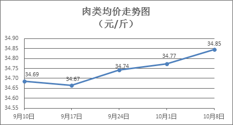 肉類商品價(jià)格微幅上漲。上周所監(jiān)測的8種肉類商品價(jià)格波動情況為5漲3跌,綜合零售均價(jià)為34.85元/斤,環(huán)比上漲0.20%。其中:排骨、精瘦肉、有皮上肉、牛肉、帶骨羊肉零售均價(jià)分別為每斤30.10元、19.19元、14.54元、54.22元、44.55元,環(huán)比分別上漲0.07%、上漲0.52%、下降0.21%、上漲0.24%、上漲0.25%。