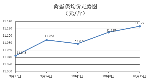 禽蛋類商品價格總體略漲。上周所監(jiān)測的6種禽蛋類商品價格波動情況為4漲2跌,綜合零售均價為11.127元/斤,環(huán)比上漲0.15%。其中:白條雞、白條鴨零售均價分別為每斤19.88元、15.54元,環(huán)比分別上漲0.45%、下降0.26%;白殼雞蛋、鴨蛋零售均價分別為每斤7.09元、8.13元,環(huán)比分別上漲0.57%、下降0.12%。