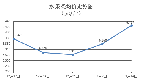 水果類商品價(jià)格總體略漲。上周所監(jiān)測的6種水果商品價(jià)格波動(dòng)情況為2漲4跌,綜合零售均價(jià)為6.427元/斤,環(huán)比上漲1.05%。其中橙子、葡萄、梨零售均價(jià)分別為每斤5.31元、13.87元、6.02元,環(huán)比分別下降1.85%、上漲4.36%、下降0.33%。