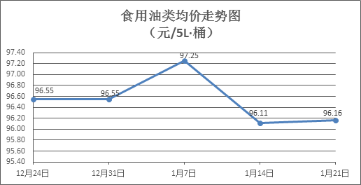 食用油類商品價格穩(wěn)中略漲。上周所監(jiān)測的9種食用油(5L裝)商品價格波動情況為3漲2跌4平,綜合零售均價為96.16元/桶,環(huán)比上漲0.05%。其中:金龍魚調和油、玉米油零售均價分別為每桶70.94元、75.45元,環(huán)比分別上漲0.32%、上漲0.32%。