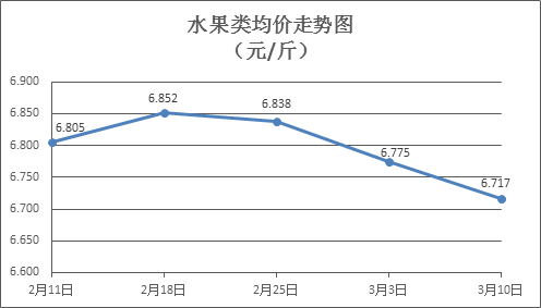 水果類商品價(jià)格小幅下降。上周所監(jiān)測(cè)的6種水果商品價(jià)格波動(dòng)情況為5跌1平,綜合零售均價(jià)為6.717元/斤,環(huán)比下降0.86%。其中橙子、蘋果、葡萄零售均價(jià)分別為每斤5.20元、7.43元、15.33元,環(huán)比分別下降0.57%、下降1.20%、下降1.10%。