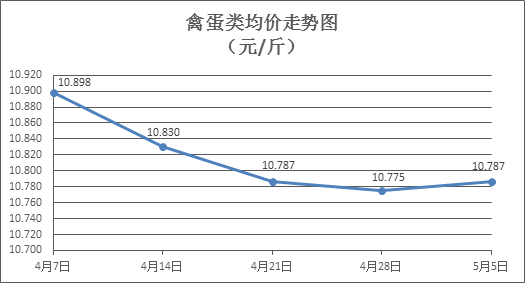 禽蛋類商品價(jià)格微幅回升。所監(jiān)測(cè)的6種禽蛋類商品價(jià)格波動(dòng)情況為3漲2跌1平,綜合零售均價(jià)為每斤10.787元,環(huán)比上漲0.11%。其中:白條雞、白條鴨零售均價(jià)分別為每斤19.94元、14.94元,環(huán)比分別下降0.10%、上漲0.88%;白殼雞蛋、鴨蛋零售均價(jià)分別為每斤6.32元、7.51元,環(huán)比分別持平、上漲0.40%。