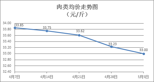 肉類商品價(jià)格總體略降。所監(jiān)測(cè)的8種肉類商品價(jià)格波動(dòng)情況為1漲5跌2平,綜合零售均價(jià)為每斤33.00元,環(huán)比下降0.69%。其中:排骨、精瘦肉、有皮上肉、牛肉、帶骨羊肉零售均價(jià)分別為每斤29.12元、18.14元、14.29元、50.34元、43.33元,環(huán)比分別下降0.14%、持平、持平、下降1.10%、下降0.32%。