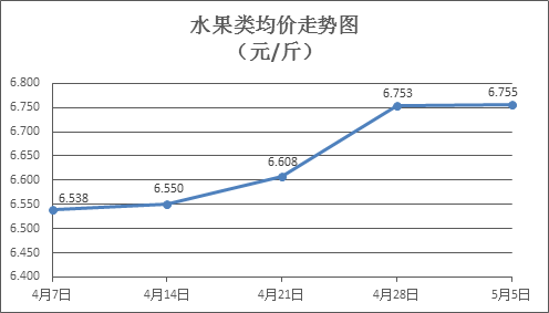 水果類商品價(jià)格微幅波動(dòng)。所監(jiān)測(cè)的6種水果商品價(jià)格波動(dòng)情況為3漲2跌1平,綜合零售均價(jià)為每斤6.755元,環(huán)比上漲0.02%。其中橙子、蘋果、葡萄零售均價(jià)分別為每斤5.55元、7.39元、15.27元,環(huán)比分別上漲0.18%、持平、下降0.20%。