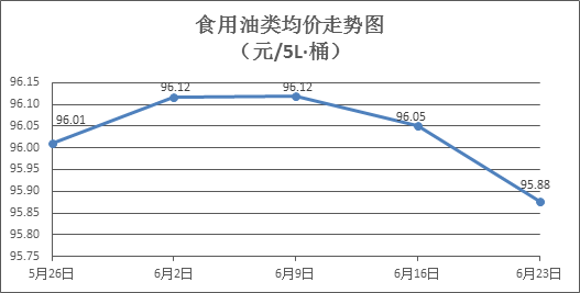 食用油類商品價格微幅下降。所監(jiān)測的9種食用油(5L裝)商品價格波動情況為2漲6跌1平,綜合零售均價為每桶95.88元,環(huán)比下降0.18%。其中:魯花花生油、玉米油零售均價分別為每桶154.13元、76.65元,環(huán)比分別下降0.17%、下降0.39%。