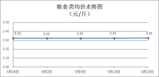 糧食類商品價格基本平穩(wěn)。所監(jiān)測的6種糧食類商品價格波動情況為2漲1跌3平,零售均價為每斤3.33元,環(huán)比上漲0.05%。其中:晚秈米、絲苗米、富強(qiáng)粉零售均價分別為每斤3.26元、3.55元、3.37元,環(huán)比分別持平、下降0.28%、上漲0.30%。