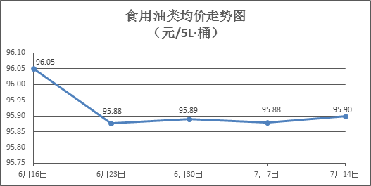 食用油類商品價(jià)格微幅盤整。所監(jiān)測的9種食用油(5L裝)商品價(jià)格波動(dòng)情況為3漲4跌2平,綜合零售均價(jià)為每桶95.90元,環(huán)比上漲0.02%。其中:胡姬花花生油、玉米油零售均價(jià)分別為每桶145.60元、76.95元,環(huán)比分別下降0.27%、上漲0.09%。