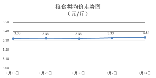 糧食類商品價(jià)格穩(wěn)中微漲。所監(jiān)測的6種糧食類商品價(jià)格波動(dòng)情況為3漲3平,零售均價(jià)為每斤3.34元,環(huán)比上漲0.35%。其中:晚秈米、珍珠米、標(biāo)準(zhǔn)粉零售均價(jià)分別為每斤3.29元、3.10元、3.17元,環(huán)比分別上漲0.92%、上漲0.65%、持平。