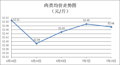 肉類商品價(jià)格小幅波動(dòng)。所監(jiān)測的8種肉類商品價(jià)格波動(dòng)情況為4漲3跌1平,綜合零售均價(jià)為每斤32.48元,環(huán)比下降0.05%。其中:排骨、精瘦肉、牛肉、帶骨羊肉零售均價(jià)分別為每斤30.45元、18.51元、46.67元、43.85元,環(huán)比分別上漲0.59%、上漲0.05%、上漲0.15%、下降0.75%。