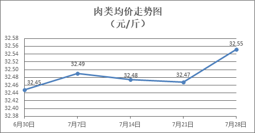 肉類商品價(jià)格小幅上漲。所監(jiān)測的8種肉類商品價(jià)格波動情況為5漲3跌,綜合零售均價(jià)為每斤32.55元,環(huán)比上漲0.26%。其中:排骨、精瘦肉、牛肉、帶骨羊肉零售均價(jià)分別為每斤31.49元、19.15元、45.88元、43.41元,環(huán)比分別上漲1.65%、上漲1.97%、下降0.63%、下降0.55%。