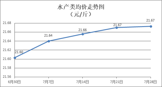 水產(chǎn)類商品價(jià)格微幅盤整。所監(jiān)測的10種水產(chǎn)商品價(jià)格波動情況為3漲4跌3平,綜合均價(jià)為每斤21.67元,環(huán)比上漲0.01%。其中:草魚、鰱魚、鱸魚、羅非魚、基圍蝦零售均價(jià)分別為每斤11.29元、9.25元、21.97元、8.90元、29.74元,環(huán)比分別上漲0.27%、上漲0.87%、上漲1.20%、持平、下降0.27%。