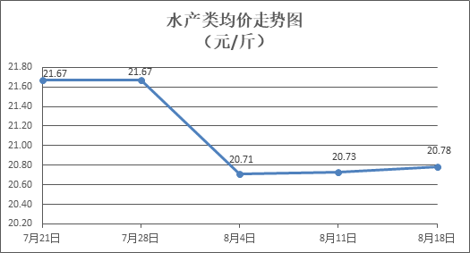 水產(chǎn)類商品窄幅盤整。所監(jiān)測的10種水產(chǎn)商品價格波動情況為5漲2跌3平,綜合均價為每斤20.78元,環(huán)比上漲0.28%。其中:草魚、鰱魚、鱸魚、羅非魚、基圍蝦零售均價分別為每斤11.21元、9.58元、21.46元、8.93元、29.89元,環(huán)比分別持平、上漲1.16%、下降0.14%、持平、上漲1.05%。