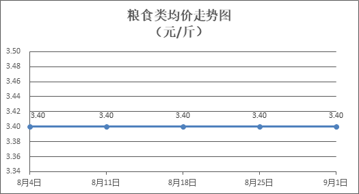 糧食類商品價(jià)格保持穩(wěn)定。所監(jiān)測(cè)的4種糧食類商品價(jià)格均持平,零售均價(jià)為每斤3.40元。其中:絲苗米、富強(qiáng)粉零售均價(jià)分別為每斤3.60元、3.37元,環(huán)比均持平。