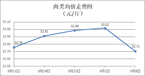 肉類商品價(jià)格總體略降。所監(jiān)測(cè)的8種肉類商品價(jià)格波動(dòng)情況為2漲5跌1平,綜合零售均價(jià)為每斤32.71元,環(huán)比下降0.95%。其中:排骨、精瘦肉、牛肉、帶骨羊肉零售均價(jià)分別為每斤32.78元、20.30元、45.52元、41.20元,環(huán)比分別下降0.88%、下降0.25%、上漲0.13%、下降5.00%。