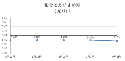 糧食類商品價(jià)格基本平穩(wěn)。所監(jiān)測(cè)的4種糧食類商品價(jià)格波動(dòng)情況為1跌3平,零售均價(jià)為每斤3.395元,環(huán)比下降0.15%。其中:絲苗米、富強(qiáng)粉零售均價(jià)分別為每斤3.58元、3.37元,環(huán)比分別下降0.56%、持平。