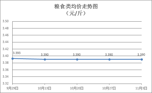 糧食類(lèi)商品價(jià)格穩(wěn)定。所監(jiān)測(cè)的4種糧食類(lèi)商品價(jià)格均持平,零售均價(jià)為每斤3.390元。其中:絲苗米、富強(qiáng)粉零售均價(jià)分別為每斤3.57元、3.36元,環(huán)比均持平。