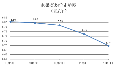 水果類商品價(jià)格繼續(xù)下降。所監(jiān)測的6種水果商品價(jià)格波動(dòng)情況為2漲4跌,綜合零售均價(jià)為每斤6.70元,環(huán)比下降0.70%。其中橙子、蘋果、香蕉零售均價(jià)分別為每斤6.42元、7.45元、3.24元,環(huán)比分別下降3.79%、上漲0.35%、下降1.07%。