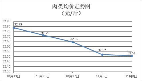 肉類商品價(jià)格有所微降。所監(jiān)測的8種肉類商品價(jià)格波動(dòng)情況為3漲5跌,綜合零售均價(jià)為每斤32.51元,環(huán)比下降0.04%。其中:排骨、精瘦肉、牛肉、帶骨羊肉零售均價(jià)分別為每斤32.26元、20.13元、45.81元、46.69元,環(huán)比分別下降0.11%、下降0.17%、下降0.02%、上漲0.27%。