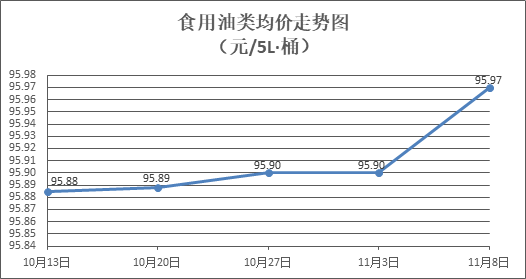 食用油類商品價(jià)格窄幅盤整。所監(jiān)測的9種食用油(5L裝)商品價(jià)格2漲4跌3平,綜合零售均價(jià)為每桶95.97元,環(huán)比上漲0.07%。其中:胡姬花花生油、金龍魚調(diào)和油零售均價(jià)為每桶146.00元、71.21元,環(huán)比上漲0.86%、下降0.11%。