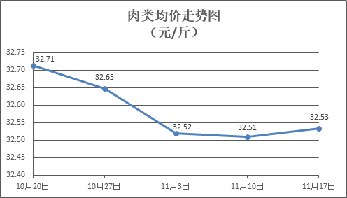 肉類商品價(jià)格窄幅盤整。所監(jiān)測的8種肉類商品價(jià)格波動(dòng)情況為3漲1跌4平,綜合零售均價(jià)為每斤32.53元,環(huán)比上漲0.08%。其中:排骨、精瘦肉、牛肉、帶骨羊肉零售均價(jià)分別為每斤32.35元、20.05元、45.88元、41.82元,環(huán)比分別上漲0.28%、下降0.40%、上漲0.15%、上漲0.31%。