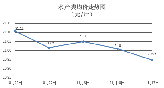 據(jù)本市21家農(nóng)貿(mào)市場監(jiān)測數(shù)據(jù)顯示,上周(11月11日至11月17日)市場上各類“菜籃子”商品供應(yīng)充足,所監(jiān)測的7大類“菜籃子”商品價(jià)格總體表現(xiàn)為2漲5跌。其中:糧油類商品價(jià)格穩(wěn)中微跌,肉禽蛋類、水果類商品價(jià)格窄幅盤整,蔬菜類、水產(chǎn)類商品價(jià)格以降為主。蔬菜與水產(chǎn)類應(yīng)季商品上市,價(jià)格以降為主。隨著氣溫下降,預(yù)計(jì)部分肉禽類商品需求上升,價(jià)格有所回穩(wěn)。