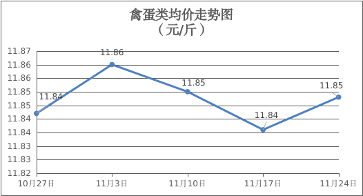 禽蛋類商品價(jià)格窄幅盤整。所監(jiān)測(cè)的5種禽蛋類商品價(jià)格波動(dòng)情況為2漲2跌1平,綜合零售均價(jià)為每斤11.85元,環(huán)比上漲0.10%。其中:白條雞、白條鴨零售均價(jià)分別為每斤20.39元、15.34元,環(huán)比分別上漲0.05%、下降0.13%;雞蛋、鴨蛋零售均價(jià)分別為每斤6.54元、7.79元,環(huán)比分別下降0.15%、上漲1.04%。